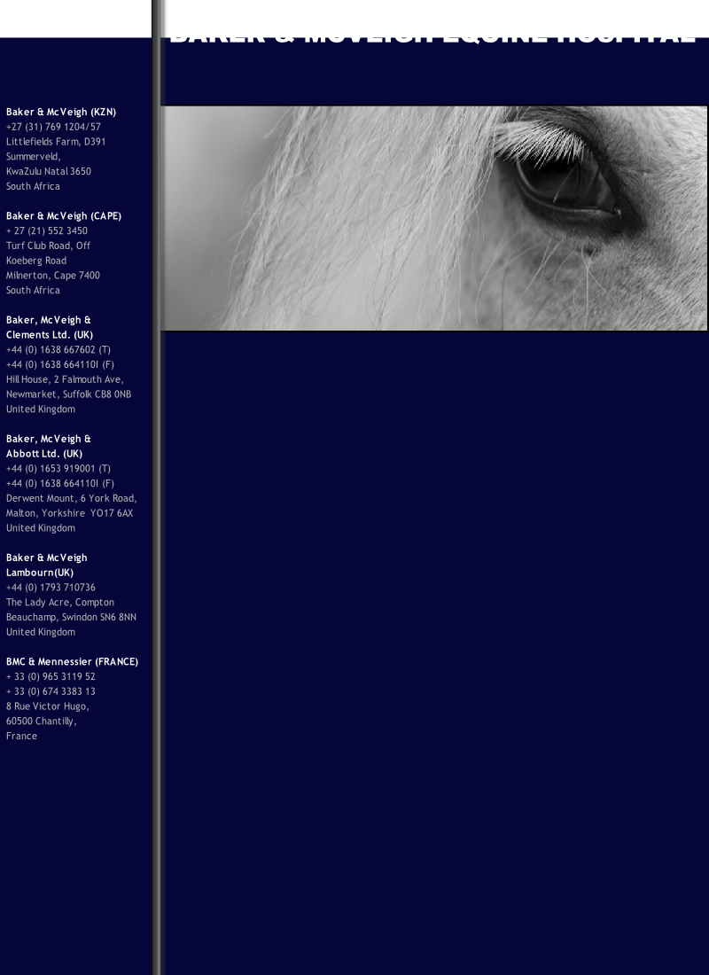Baker, McVeigh and Clements is part of the global Baker McVeigh group of renowned veterinary practices offering a quality service to all aspects of the racehorse and sports horse industries.